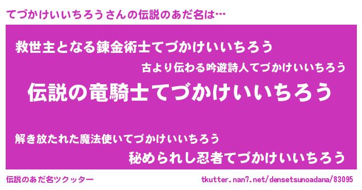 | 胡散臭い通販商品みたいなあだ名 | 『必ず成功するブレスレット…その名も「てづかけいいちろう」』 |