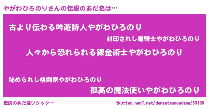 | ヘコむあだ名 | 『やがわひろのり(震え声)』『やがを』 |