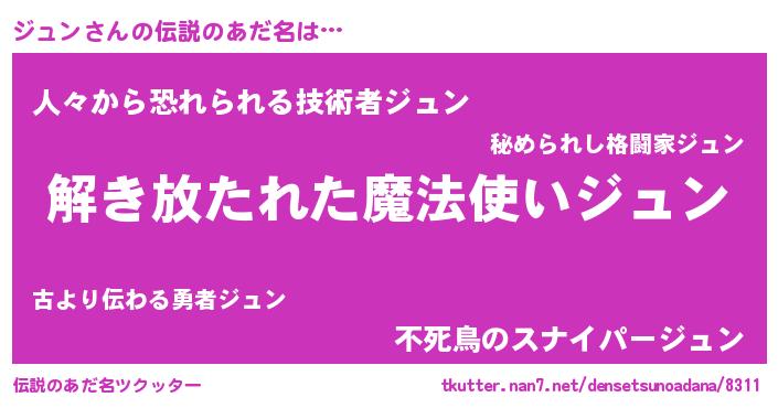 | 男性向けラノベタイトル風あだ名 | 『ダンジョンにジュンを求めるのは間違っているだろうか』 |