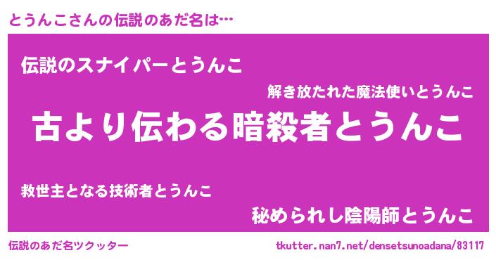 | 胡散臭い通販商品みたいなあだ名 | 『来世でも幸せになれる健康食品…その名も「とうんこ」』 |