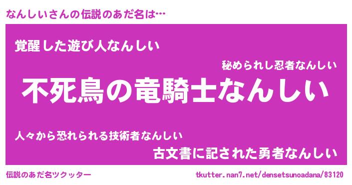 | ファンタジー風あだ名 | 『ゼナントゥ』『カークナンラー』 |