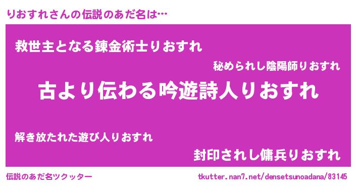 | ヒーロー風カッコイイあだ名 | 『サイバー戦士リオスレ』『仮面リオダー』 |