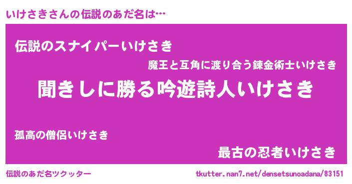 | 男性向けラノベタイトル風あだ名 | 『いけさきという概念が存在しない退屈な世界 』 |