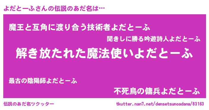 | ヒーロー風カッコイイあだ名 | 『魔戒騎士ヨダ』『仮面ヨダダー』 |