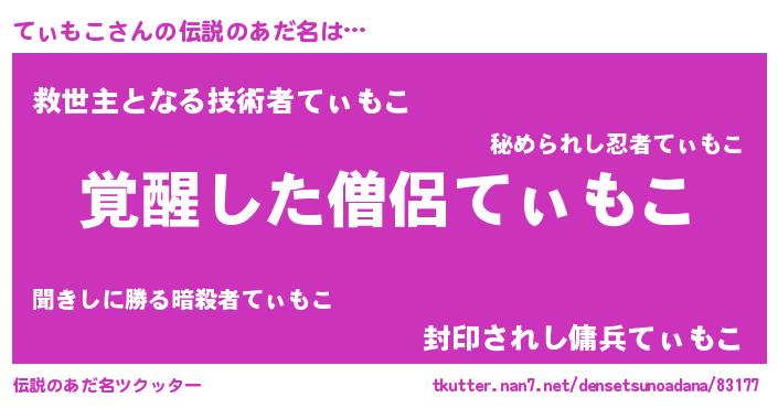 | 男性向けラノベタイトル風あだ名 | 『てぃもこの嫁は女の子じゃないと思った?』 |