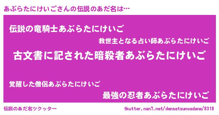 | 意味不明あだ名 | 『永久保存あぶらたにけいご』 |