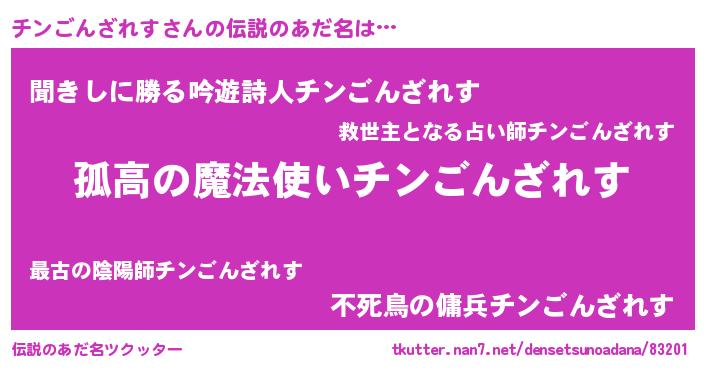 | 肩書あだ名 | 『チンごんざれす閣下』 |