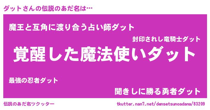 | ヒーロー風カッコイイあだ名 | 『究極戦士ダット』『幻影騎士ダッ』 |