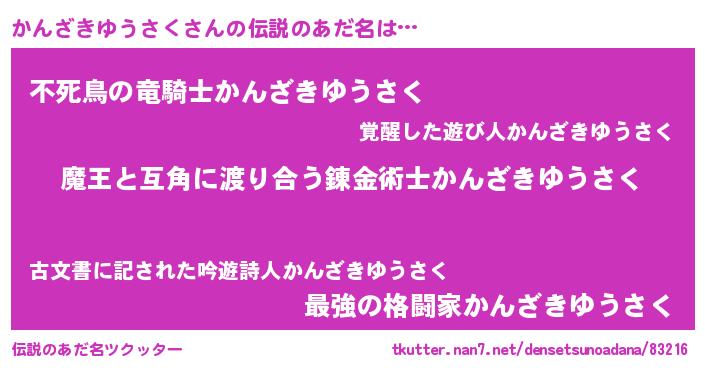 | 男性向けラノベタイトル風あだ名 | 『転生したらかんざきゆうさくだった件』 |