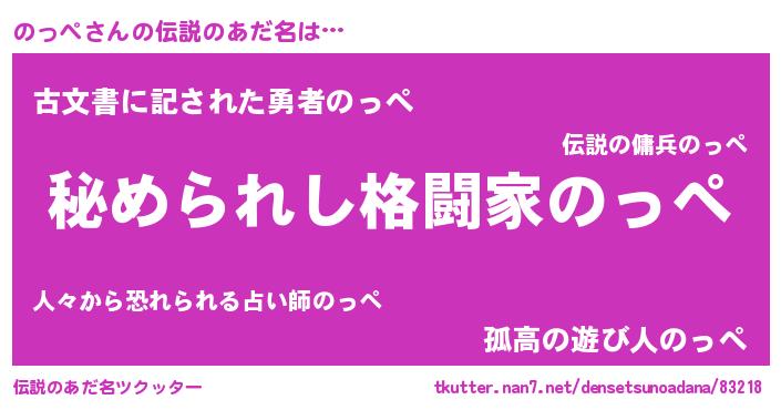 | ヒーロー風カッコイイあだ名 | 『ウルトラのっぺマン』『ネオノッペ』 |
