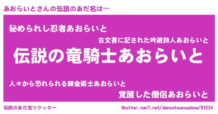 | 意味不明あだ名 | 『住所不定無職あおらいと(12歳)』 |