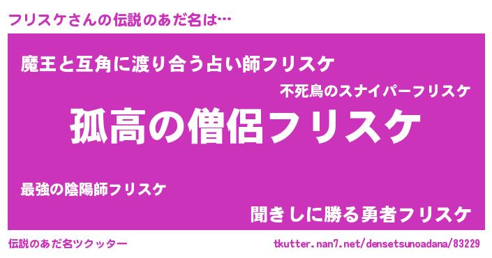 | ヒーロー風カッコイイあだ名 | 『黄金騎士フリ』『友情の使者フリスケ』 |