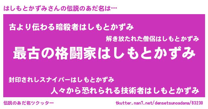 | 意味不明あだ名 | 『はしもとかずみフォーエバー』 |