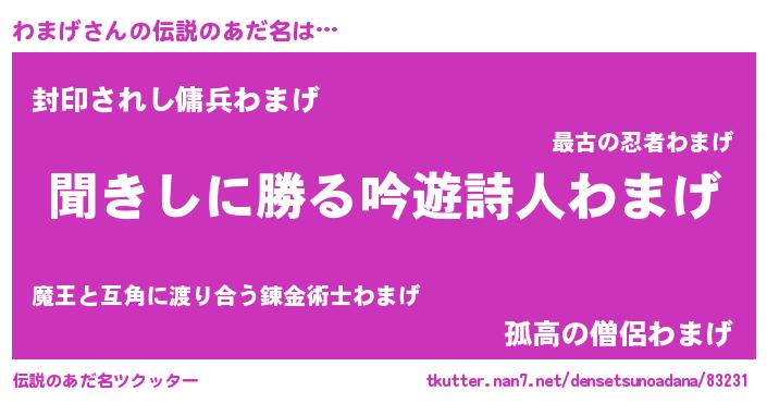 | ヒーロー風カッコイイあだ名 | 『ネオワマゲ』『スーパーワマゲ』 |