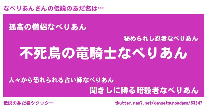 | 女子向けラノベタイトル風あだ名 | 『なべりあん姫と円卓の騎士』 |
