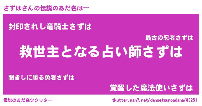 | ヒーロー風カッコイイあだ名 | 『天空の使者さずは』『スーパーサズハ』 |