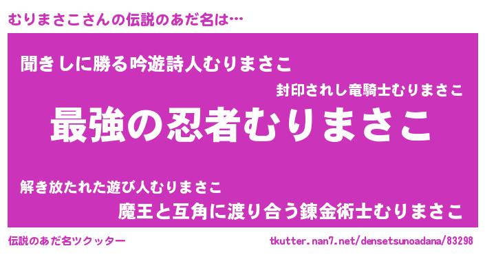 | 意味不明あだ名 | 『自称むりまさこ』『永久保存むりまさこ』 |
