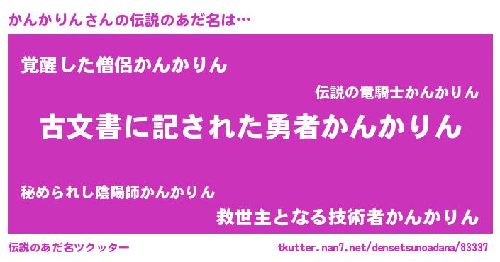 | ヒーロー風カッコイイあだ名 | 『ネオカンカリン』『炎刃騎士カン』 |