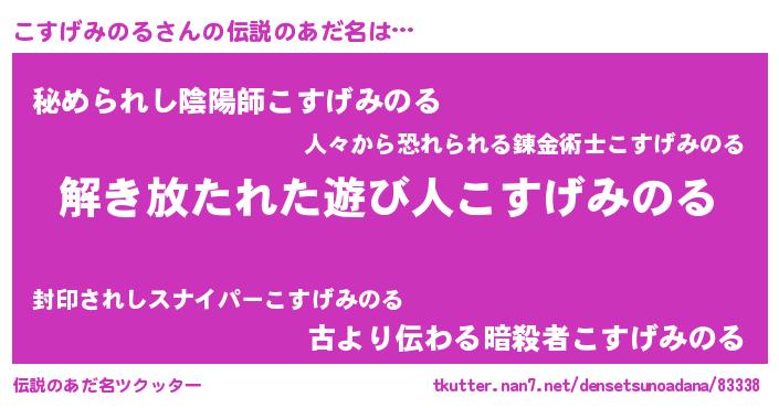 | 意味不明あだ名 | 『住所不定無職こすげみのる(89歳)』 |
