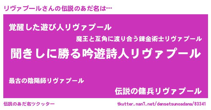 | 女子向けラノベタイトル風あだ名 | 『異世界で失敗しない100のリヴァプール』 |