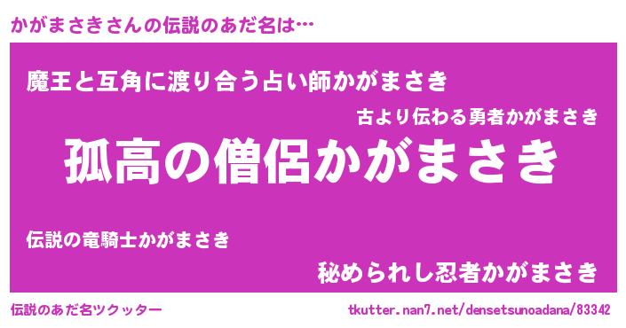 | 意味不明あだ名 | 『とにかく怪しいかがまさき』 |