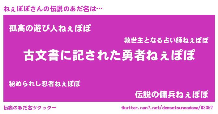 | 意味不明あだ名 | 『住所不定無職ねぇぽぽ(77歳)』 |