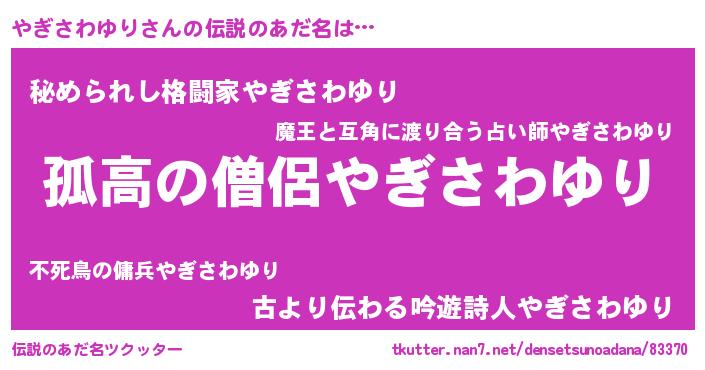 | 意味不明あだ名 | 『住所不定無職やぎさわゆり(62歳)』 |