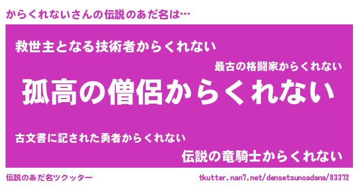 | 意味不明あだ名 | 『とにかく怪しいからくれない』 |