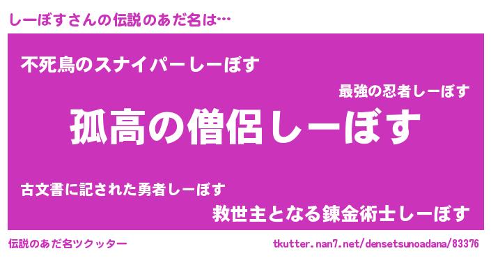 | 意味不明あだ名 | 『とにかく怪しいしーぼす』 |