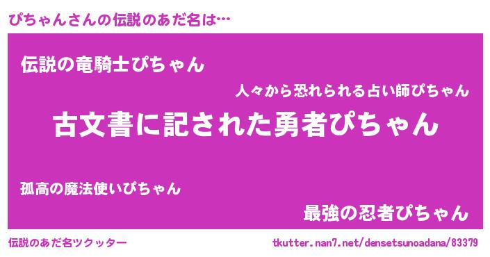 | 意味不明あだ名 | 『自称ぴちゃん』『永久保存ぴちゃん』 |