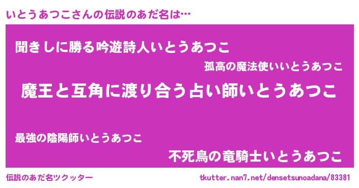 | 女子向けラノベタイトル風あだ名 | 『いとうあつこ恋絵巻』 |
