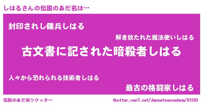 | ヒーロー風カッコイイあだ名 | 『最強戦士シハル』『ネオシハル』 |