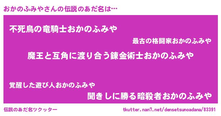 | 女子向けラノベタイトル風あだ名 | 『闇のおかのふみや』 |