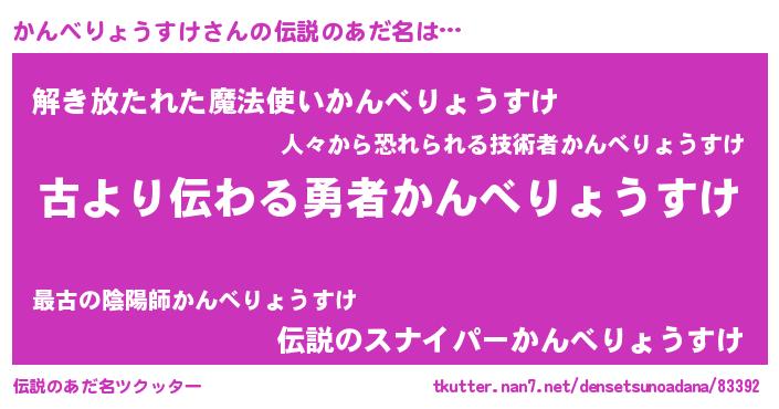 | 意味不明あだ名 | 『住所不定無職かんべりょうすけ(71歳)』 |