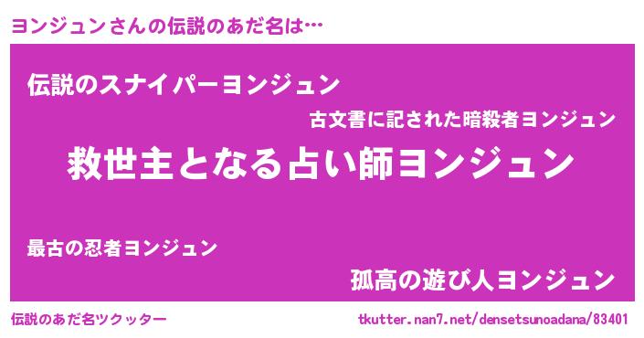 | ヒーロー風カッコイイあだ名 | 『慈愛の使者ヨンジュン』『炎刃騎士ヨン』 |