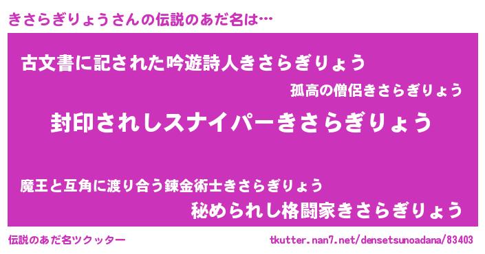| 意味不明あだ名 | 『自称きさらぎりょう』 |