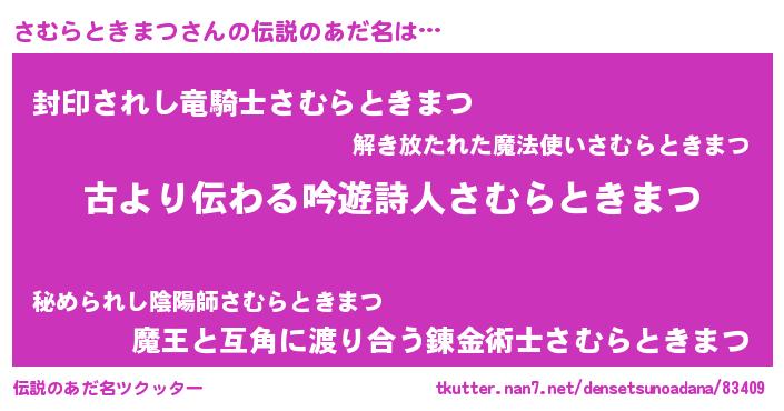 | 意味不明あだ名 | 『永久保存さむらときまつ』 |
