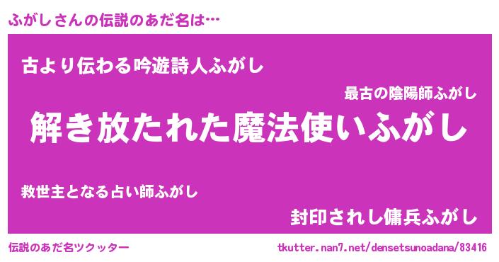 | ヒーロー風カッコイイあだ名 | 『サイバー戦士フガシ』『魔戒騎士フガ』 |