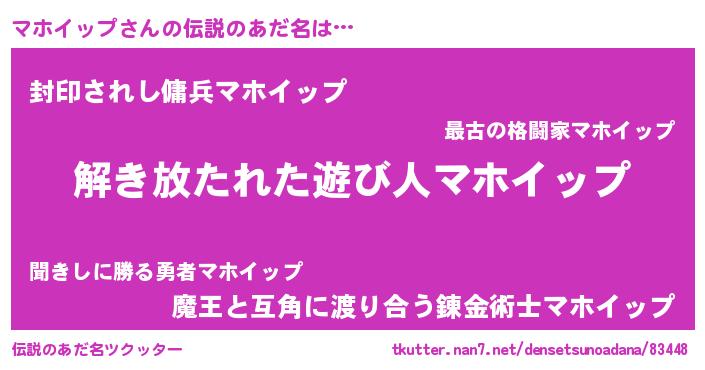 | 男性向けラノベタイトル風あだ名 | 『Re:マホイップから始める異世界生活』 |