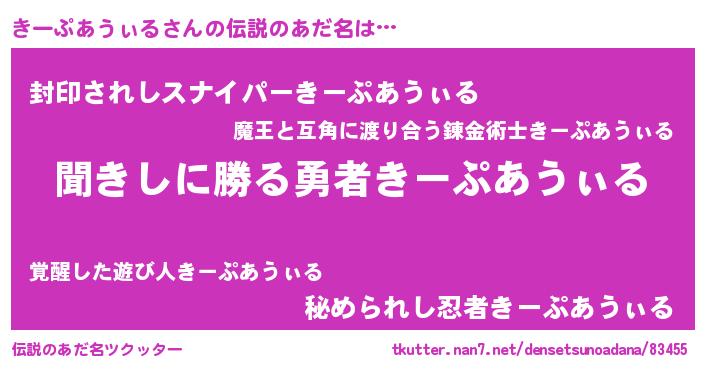 | 意味不明あだ名 | 『永久保存きーぷあうぃる』 |