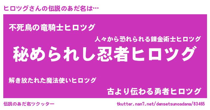 | ファンタジー風あだ名 | 『エターナルヒロツグー』『ゼヒロトゥ』 |