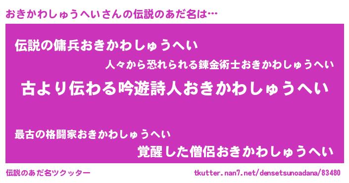 | 意味不明あだ名 | 『自称おきかわしゅうへい』 |