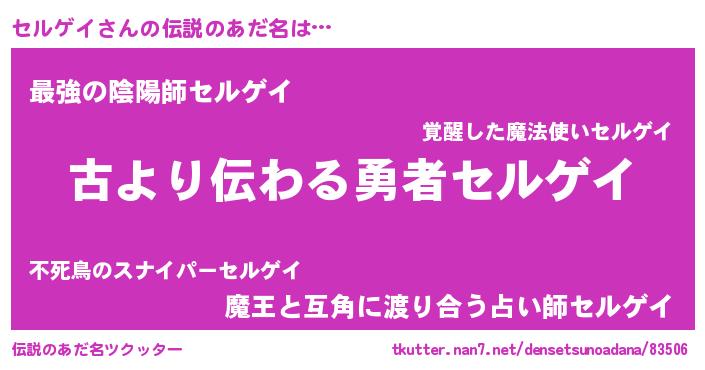 | ファンタジー風あだ名 | 『セルディッシュ』『ゼセルトゥ』 |