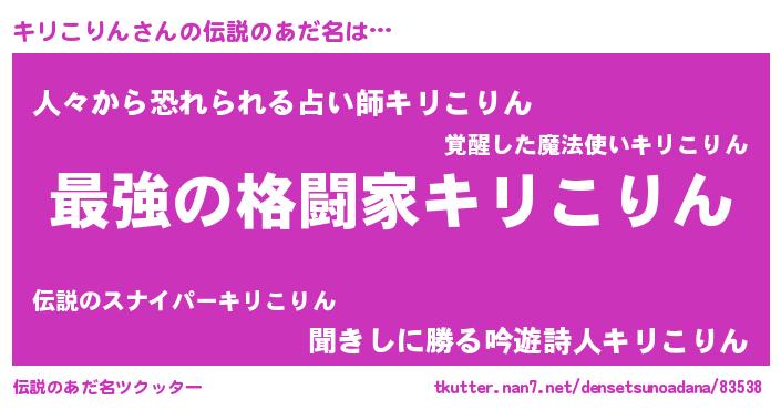 | 意味不明あだ名 | 『キリこりんフォーエバー』 |