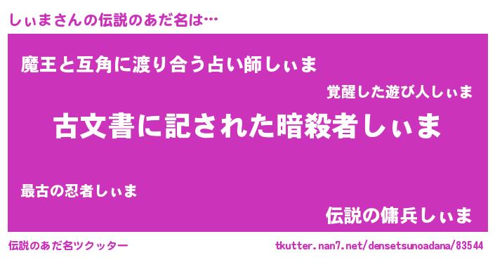 | 意味不明あだ名 | 『永久保存しぃま』『エリンギ科しぃま属』 |