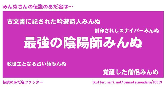 | 意味不明あだ名 | 『自称みんぬ』『みんぬフォーエバー』 |