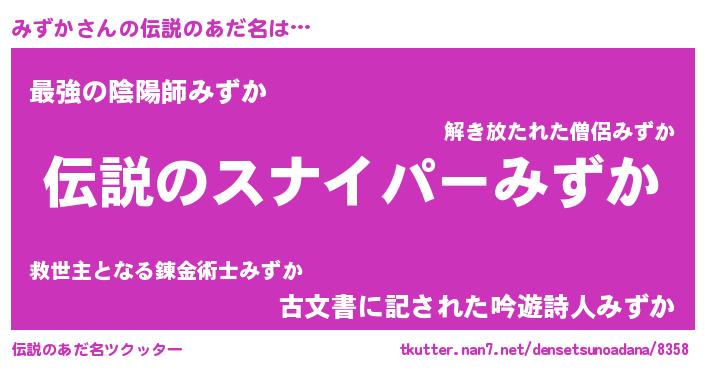 | 自動車の名前っぽいあだ名 | 『ミウディ』『ミズティマ』 |