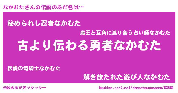 | 意味不明あだ名 | 『永久保存なかむた』『自称なかむた』 |