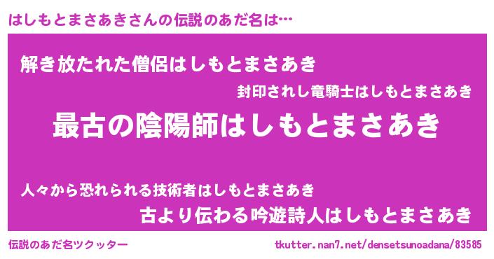 | 意味不明あだ名 | 『自称はしもとまさあき』 |