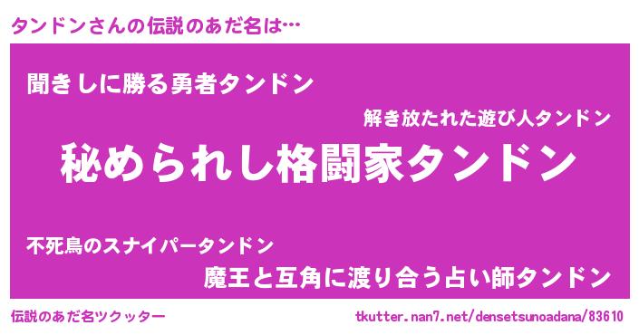 | ヒーロー風カッコイイあだ名 | 『超時空戦士タンドン』『ネオタンドン』 |